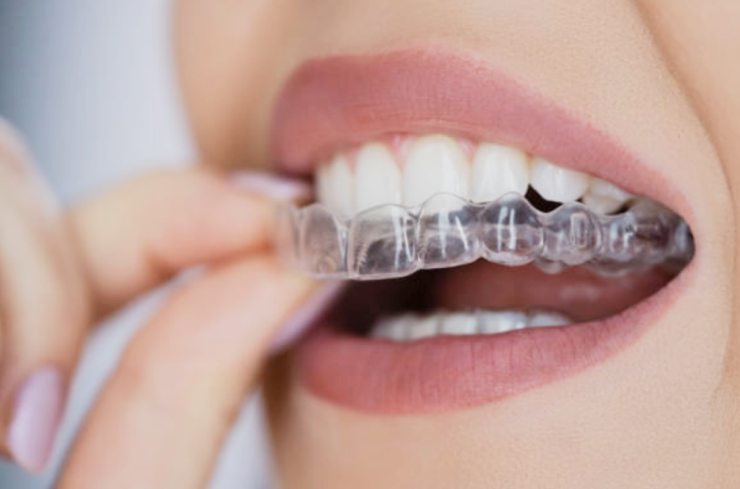 Описание: прозрачные ортодонтические капы, которые носятся для постепенного выравнивания зубов.